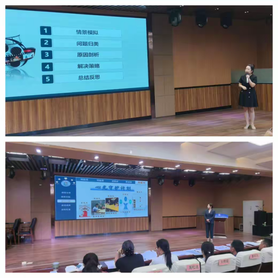 6月12日,决赛在七楼报告厅以开放式形式举行。参赛选手围绕班级建设方案实施、班级活动策划、模拟情景处置及答辩四个环节进行展示。比赛过程中,选手们以饱满的精神面貌、扎实的专业功底、宽阔的德育视野,展现了特色鲜明、饱含情怀的教育策略和治班理念,充分彰显了我院班主任队伍优良的职业素养和扎实的业务能力。