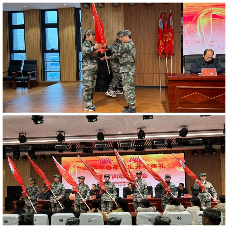学院党委书记郭国强作军训动员讲话。郭书记在同学们新征程开始之际,提出两点希望勉励大家。一是希望同学们将美好的愿望与成才实践有机结合,锚定高技能人才标准,坚定“人人努力成才、人人皆可成才”的信心,通过在经贸大家庭的文化熏陶、行为养成、刻苦磨炼,掌握新知识,学到真本领,实现人生梦想和价值,为社会、为家庭、为个人找到一条理想成功之路。二是希望大家在军训时拿出“直挂云帆济沧海”的勇气,去接受军训的洗礼,练就健康的体魄、坚定的毅力、执着的追求、迎难而上的勇气和永不言败的精神。