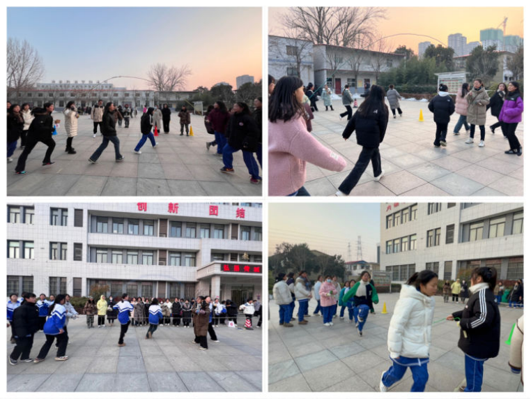 为丰富校园文化生活,贯彻“五育化人”育人理念,激发学生参加体育锻炼的热情,提高身体素质,增强班级凝聚力,推动校园精神文明建设,选拔出参加学院跳大绳比赛的参赛队伍,河南经济贸易技师学院艺术教育系于2023年12月26日下午课外活动时间,在四号楼前广场举办了“青春跳跃 各显‘绳’通”冬季跳大绳选拔赛。