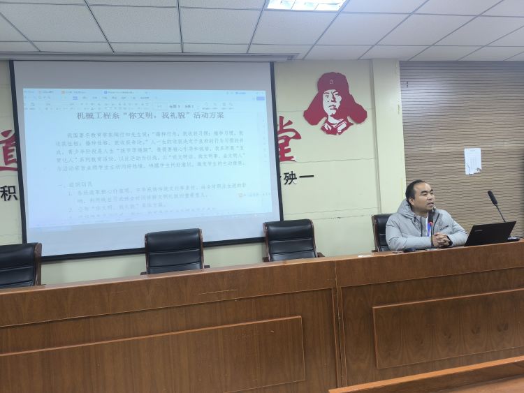 2023年11月27日,机械工程系在2号教学楼401报告厅开展“你文明、我礼貌”养成文明习惯活动动员大会。