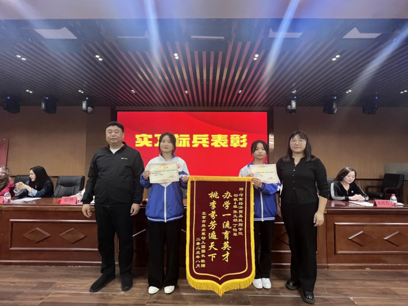 大会对21级实习成绩优异的两位同学进行了表彰,向她们颁发“实习标兵”的证书和锦旗。