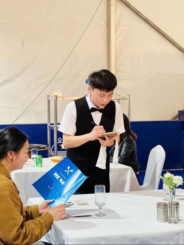 我系选手全力以赴,凭借扎实的功底和出色的技能,取得优异成绩,荣获餐厅服务(国赛精选项目)银牌,餐厅服务(世赛项目)铜牌!