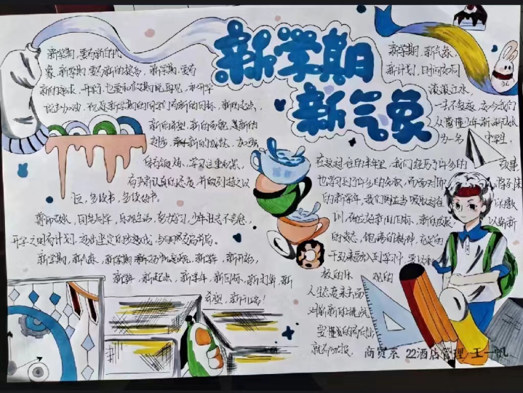 一幅幅图文并茂,活泼新颖的手抄报,一笔一划勾勒出了同学们对新学习学习生活的期待和规划,展现了同学们元气满满、昂扬向上的精神面貌。