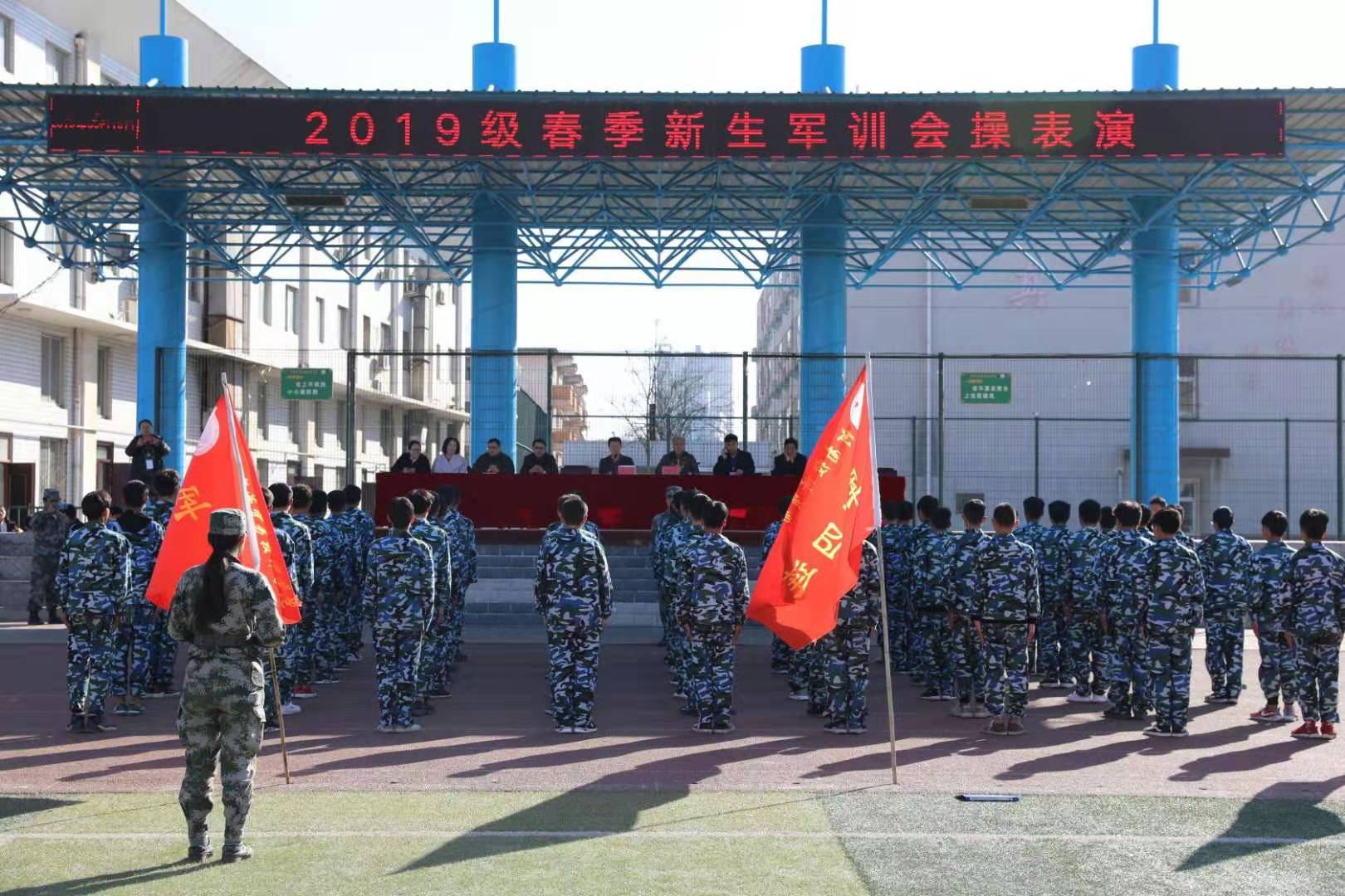 为检验2019级春季新生军训成果,激励新生发扬军人不怕苦、不怕累的作风,我院于2019年3月15日隆重举行2019级春季新生军训会操表演。