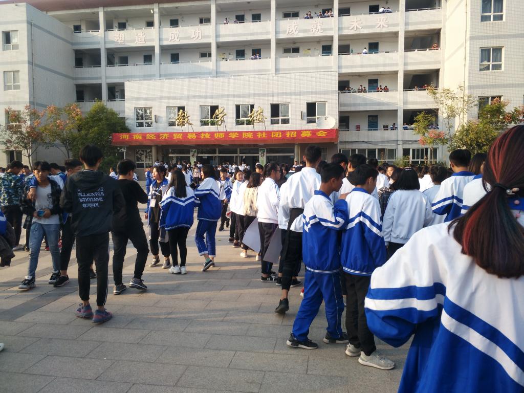 10月11日下午4:30,河南经济贸易技师学院社团招募会正式开始,2号楼广场,人山人海,门庭若市,热闹非凡,同学们把各个社团围的水泄不通,有的在询问问题,有的在填表,有的在扫社团二维码,有的同学直奔心仪的社团,面对同学们极大的热情和渴望加入社团的心情,我们的老师和社团负责人不敢丝毫懈怠,他们均耐心细致地答疑解惑,给同学们办理入社手续,交代相关注意事项等等。