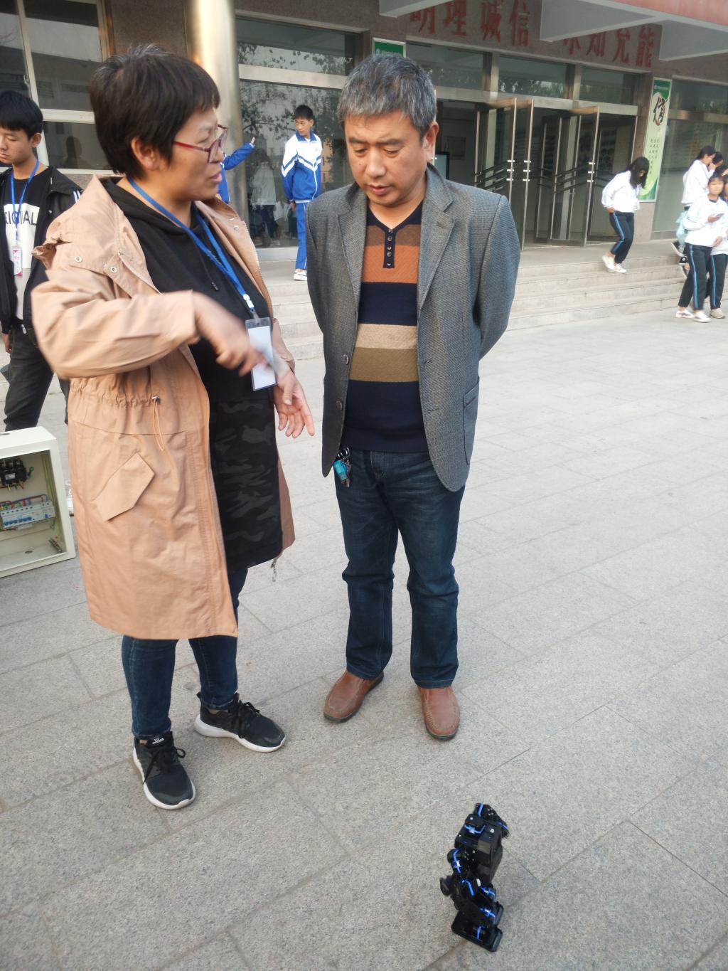 副院长苏天保也来到了现场,他对招募会也特别关心,并在机器人社团认真聆听刘艳菊老师的讲解。