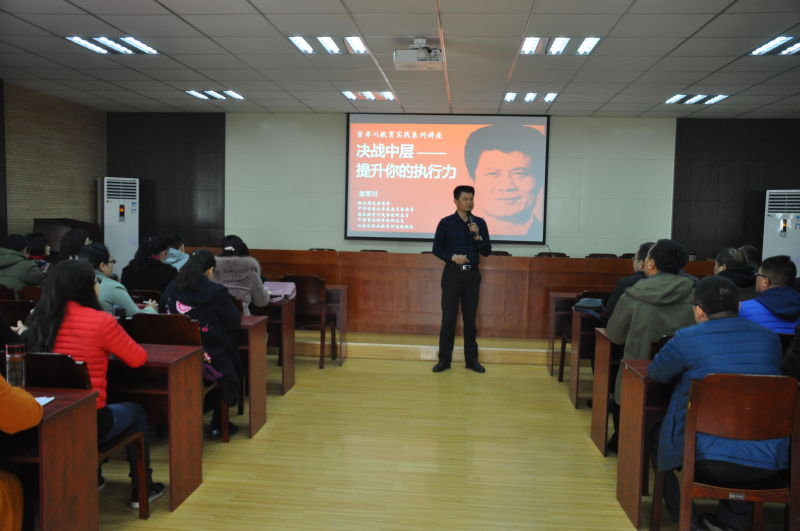 上午,翁孝川老师为我院全体中层干部娓娓分享讲座《决战中层----提升你的执行力》。翁老师结合中国职业技术教育的发展态势逐步引出自己的观点:(1)中层干部要有学校意识—校长思维;(2)学校的管理是个闭合系统;(3)中层干部的行为要求:我来干—补位;(4)中层干部的行为要求:合作—甘当配角;(5)人生的价值在于奋斗;(6)氛围无价—激发活力。
