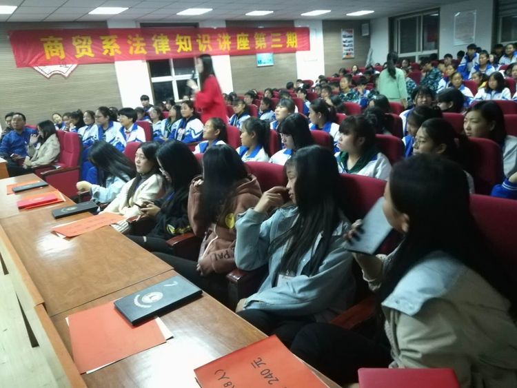 17级新生开学已经两个多月,学生们从最初入校时的热情、新奇、积极上进到了现在的疲软期,学校出现了早恋、打架等事件。为此,商贸系特开展本次讲座,目的是让同学们通过讲座了解一些法律知识,增强法制观念,明白早恋带来的严重后果,拒绝校园欺凌从自身做起。杜绝违法犯罪行为,做个知法、懂法、守纪的好学生好少年。