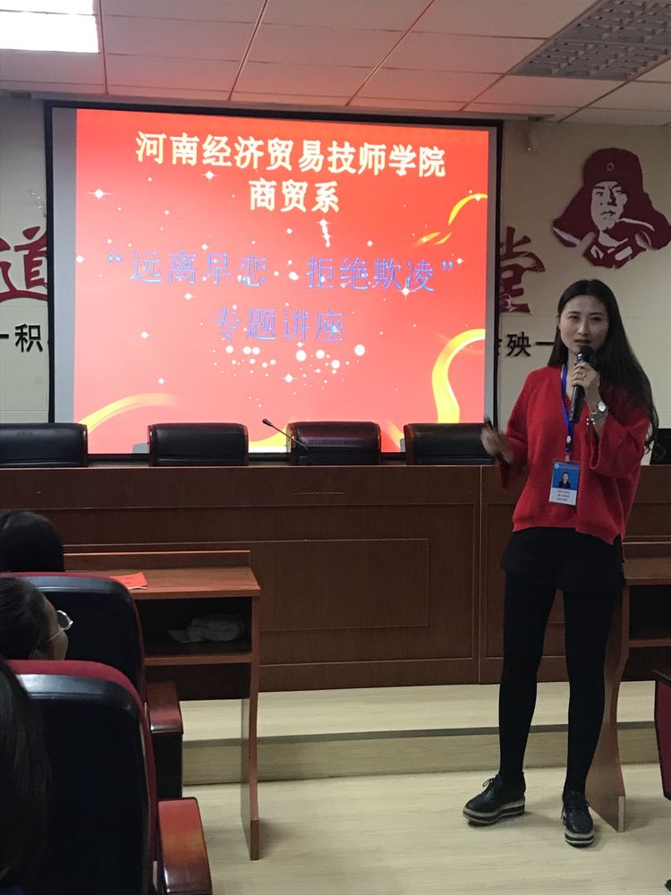 2017年11月2日晚上八点,商贸系在二号教学楼401教室召开以"远离早恋,拒绝欺凌"为主题的法律知识讲座。本次讲座由商贸系冯亚会老师主讲,面向的是17级全体学生。