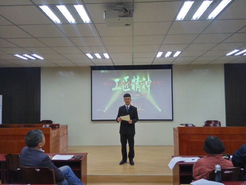 2017年10月11日下午4:30在我院2#教学楼408教室拉开了决赛的帷幕,各位选手通过精彩的演讲诠释着工匠精神的内涵,结合大国工匠的故事和自己身边的“工匠”真实事迹描绘出自己的技能梦想,比赛精彩纷呈,高潮迭起,评委和观众报以热烈的掌声。