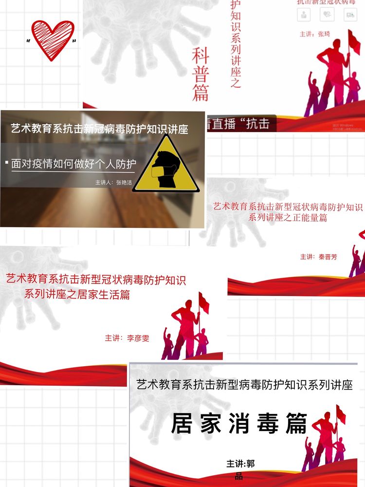 为切实做好学院新型冠状病毒感染的肺炎防控工作,积极响应国家“离校不离教、停课不停学”的要求,深入贯彻学院重要指示批示精神,艺术教育系正全力以赴配合学院做好疫情防控期间的各项工作。最大限度减少疫情对正常教育教学秩序的影响,艺术教育系特制定了我系延期开学期间开展防控知识主题讲座的实施方案。