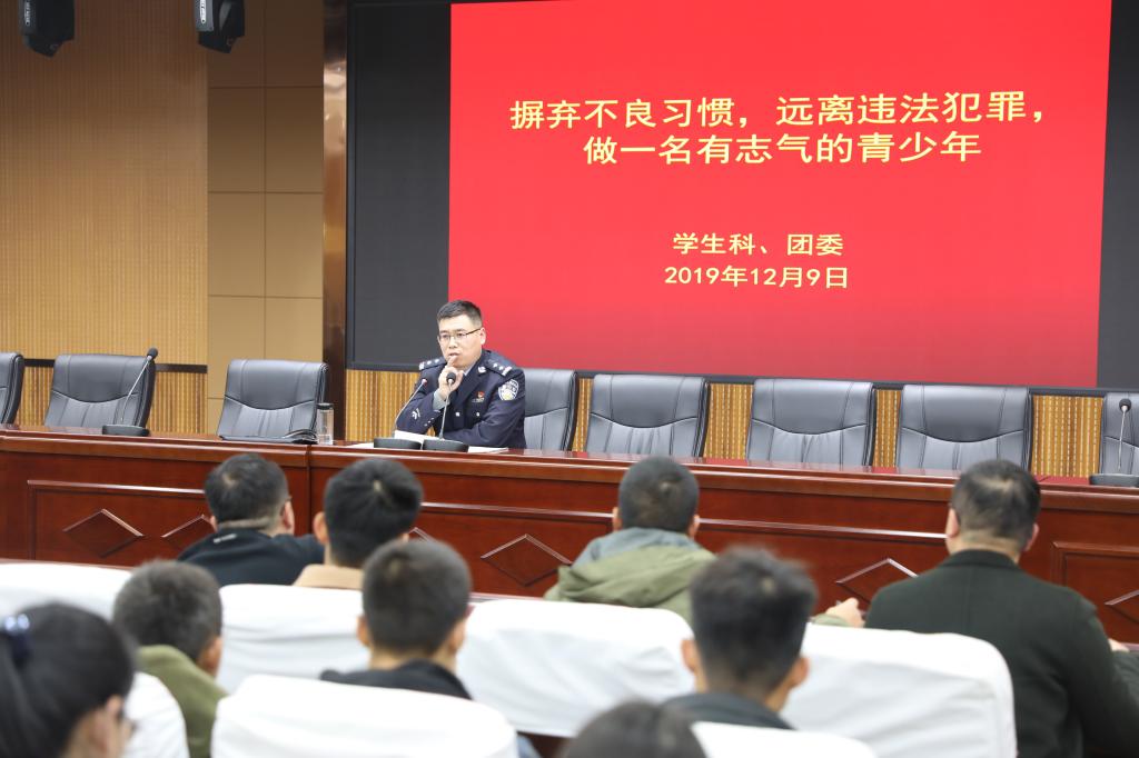 12月9日下午4:30,办公楼7楼多功能报告厅座无虚席,副院长张志杰、学生科长郭锐、保卫科长李达、各系书记、班主任代表、各班的代表,都来聆听由新乡市公安局南桥分局刘局长带来的法制讲座。刘局长依据自己多年处理案件的工作经验,分析了近些年青少年违法犯罪的概况,指出青少年违法犯罪在整个违法犯罪案件中占有较大比例,而犯罪原因很多都是有很小的事件所引起,如:说话不注意方式,带脏字,乱给同学起绰号、早恋、网瘾、游戏瘾等,而这些又与其自身的不良习惯有很大的关系,容易导致校园欺凌、打架斗殴事件的发生,然后刘局长又结合震惊全国的云南大学“马加爵案件”、西安音乐学院“药家鑫事件”指出青少年由于自身心理发育不够成熟,考虑问题简单、容易意气用事,容易受情绪的控制而做出不理智的事,甚至是影响极坏的重大刑事案件,而一旦造成案件,造成的就是多个家庭的悲剧,一生的悔恨,他告诫同学们为人一定要宽容大度,学会站在他人的角度看问题,学会理性分析和对待问题,切莫冲动,冲动是魔鬼。