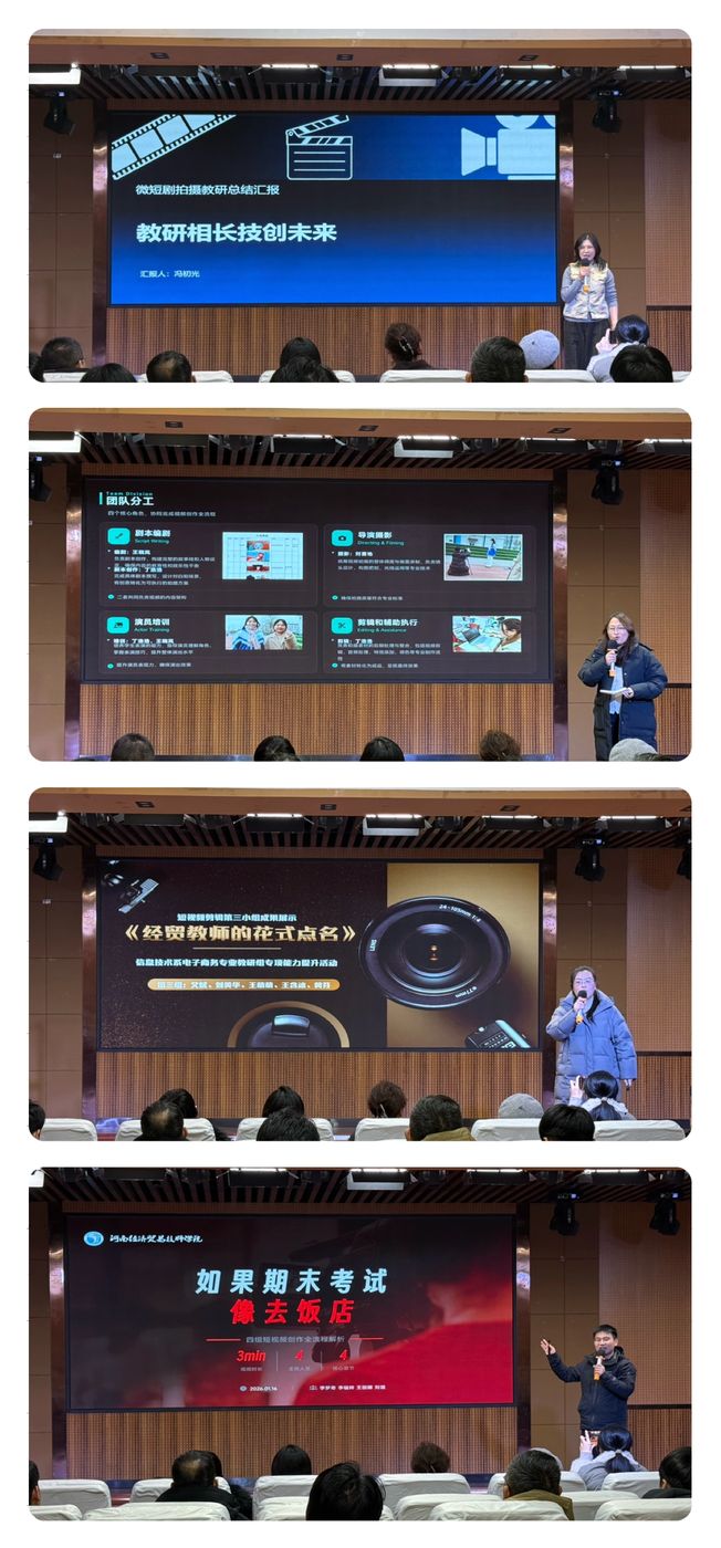活动尾声张主任总结发言:今天的第八期教师业务能力提升活动暨技能展示,尽显大家扎根专业、实干笃行的风采。四大专业组亮点纷呈,数字媒体组文创作品创意与实践兼备,网络与云计算组赛事复盘沉淀教练技能,电商组微视频创作更是突破舒适区的实干尝试。本次实战PK不是形式比拼,而是教师队伍建设的务实之举——我们正从理论传授者转变为技能实践者,实现了从“假把式”到“真师傅”的关键跨越。回望八期探索,从示范课到专项培训,我们始终锚定课堂打磨本领。未来,愿大家继续实干笃行,培育更多岗位需要的高素质技能人才。