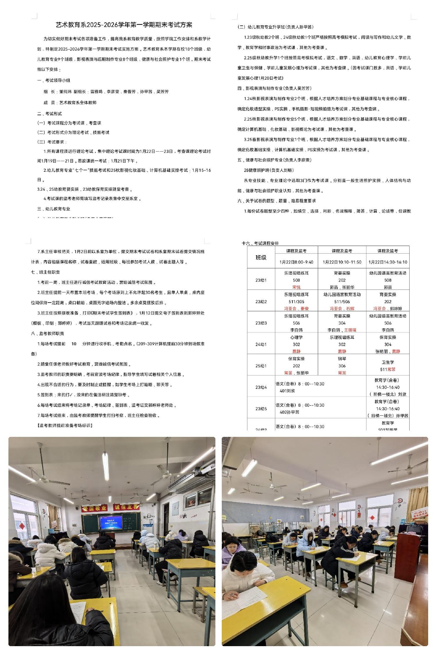 为检验本学期学生学习成效和教师教学成效,我系有序开展期末考试,各专业学生全员参与。本次考试紧扣教学大纲,覆盖核心文化课程,考务安排周密,监考严格规范,考场秩序井然。学生遵规应考,展现良好学风。考后及时组织开展集中阅卷与试卷分析,梳理教学薄弱点,优化教学方案,实现以考促教、以考提质。