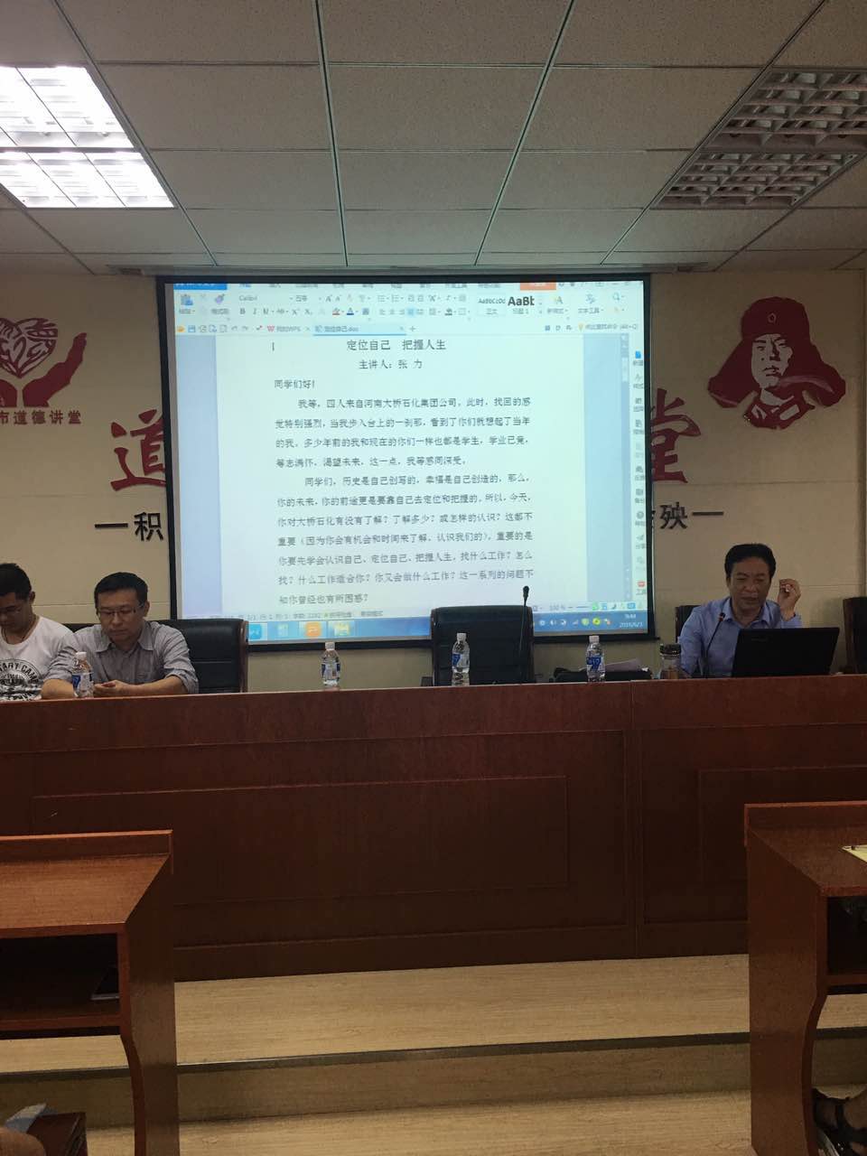 2016年6月3日,我校商贸系邀请校企合作企业大桥石化的张校长一行为我系学生进行职业规划专题讲座,商贸系所有在校师生参加该讲座。