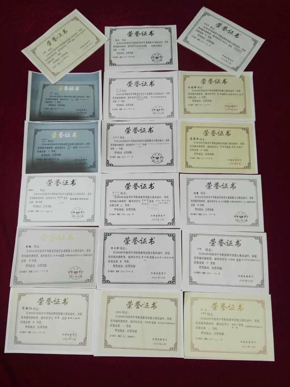 2016年11月,我校学生参加了河南省教育厅举办的“中职学校学生素质能力和技能大赛”,我校共参加了7个素质能力和14个技能项目的竞赛,共有13人荣获一等奖,29人荣获二等奖,16人荣获三等奖。同时,我校荣获一等奖的优秀辅导教师11人,二等奖的优秀辅导教师22人,三等奖的优秀辅导教师16人。现将获奖师生名单予以公布。