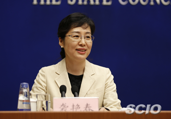 国新办新闻局副局长袭艳春主持本次新闻发布会(吴晓山 摄)