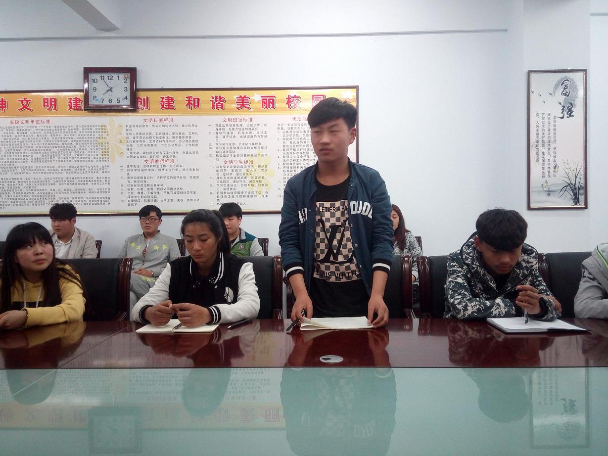 2015年5月20日晚上,由学生科主办的“学生生活座谈会”在综合实训楼三楼会议室举行,校工会主席张志杰、后勤服务公司经理王彦志、学生科长聂永利、机械加工系书记于淼、计算机系书记曾庆辉、电工电子系书记杨跃宗等出席会议,与来自学生会和6个系的20余名学生代表一同进行座谈。座谈会由学生科长聂永利主持。