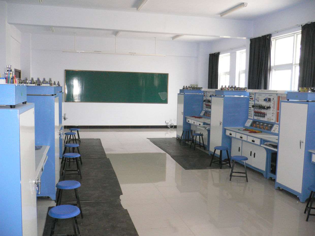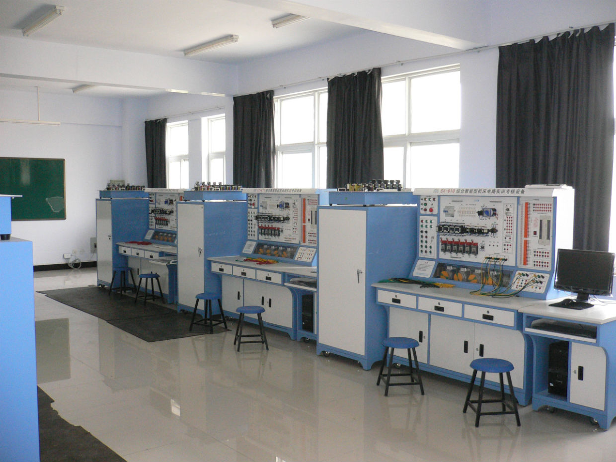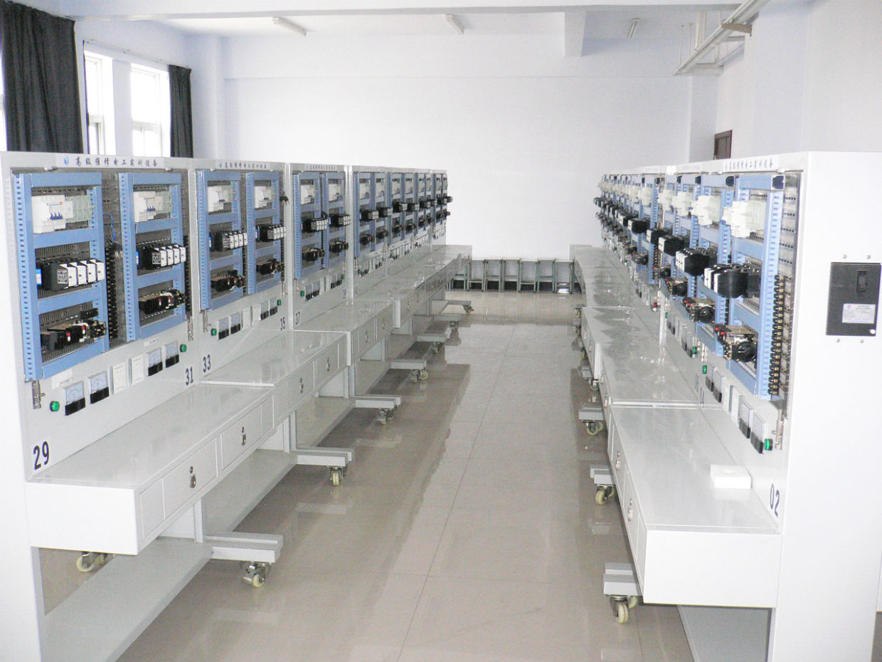 高级机电实训室主要用于电气自动化、机电一体化专业中级、高级和预备技师的实训教学、技能鉴定和竞赛训练需要,配置6套SX—610A智能型机床电路实训考核设备和18套常用机床电气线路配线盘,其中每套智能型机床电路实训考核设备设备包括电动葫芦、CA6140型卧式车床、Z35摇臂钻床、X62W万能铣床、Z3050型摇臂钻床、M1432A万能外圆磨床、T68型卧式镗床和M7120型平面磨床等8种机床线路板,可以进行手动开关设障检修、电脑监控设障检修和PLC控制改造机床线路及故障检修的实训教学,18套常用机床电气线路配线盘包括CA6140普通车床配电盘、M7130平面磨床配电盘、Z37和Z3050摇臂钻床配电盘、X62W万能铣床配电盘、M1432A万能外圆磨床配电盘。