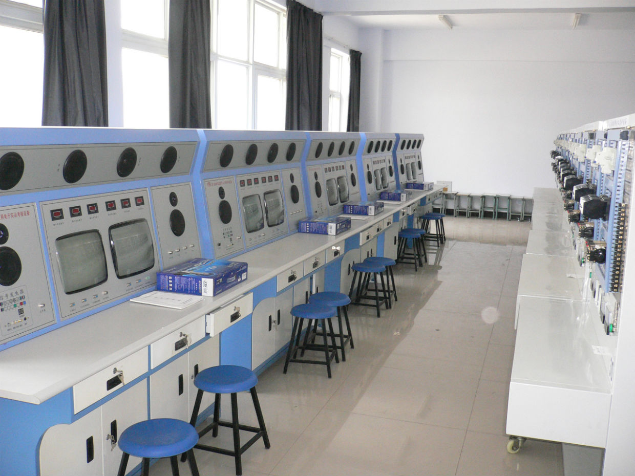 高级家电维修实训室配备有SX—200A型智能家用电子维修实训考核设备10套,主要用于应用电子技术学生能够进行调幅/调频收音机、双卡座立体声录放音机、TA--μPC黑白电视机、TA两片彩色电视机、I2C总线彩色电视机、AV功放家庭影院和DVD视盘机等项目的实训教学和技能鉴定需要。