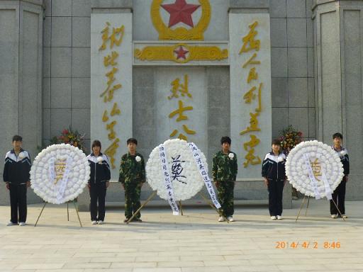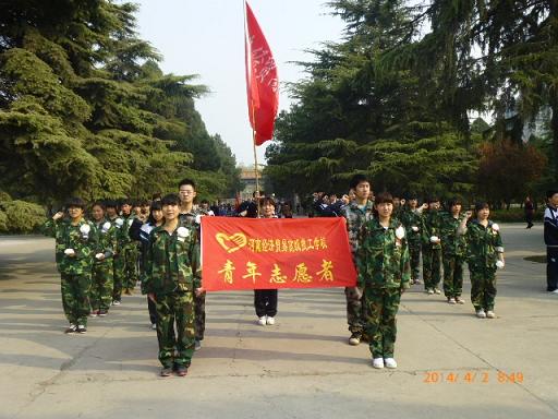 2014年4月2日上午,我校组织青年志愿者代表前往新乡市烈士陵园扫墓,缅怀革命先烈。
