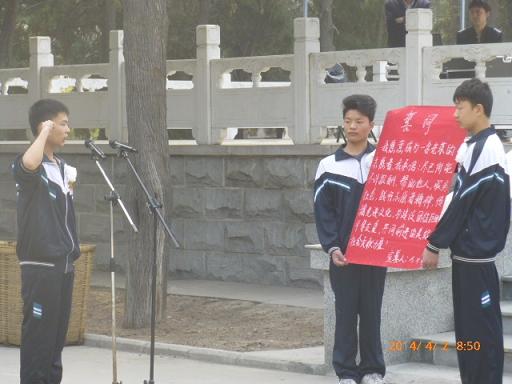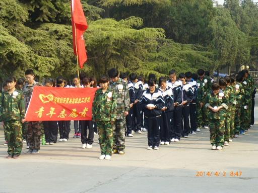参加本次活动的志愿者代表共计55人。在校团委的带领下,同学们一大早手持白花及自己亲手制作的花圈,来到了新乡市烈士陵园。扫祭活动由电工电子系团总支书记杨跃宗老师主持。同学们个个庄严肃穆,献花圈、鞠躬、默哀、重温入团誓词、重温志愿者誓词。12电商班学生申亚新同学代表全体学生向烈士表达了心声:同学们,我们今天的幸福生活是用英烈们的献血和生命换来的,我们怎么忍心让它虚度。让我们继承先烈遗志,奋发图强,用自己的实际行动谱写无悔的青春。接着商贸系团总支书记刘学昌老师讲话,他讲到:先烈们他们坚贞的民族气节、高尚的道德品质和伟大的献身精神将与青山共存、与日月争辉。我们作为青年学生,是祖国的生力军和未来的建设者,美丽而繁荣的国家需要我们去维护和建设;清新而自然的环境和社会,需要我们去打造和创建;深藏在文明社会中的不良陋习需要我们去纠正和引导。让我们继承先烈遗志,为家乡的建设、为祖国的富强而努力学习、努力奋斗,做一名合格的青年学生,做一名优秀的青年志愿者。”之后,同学们向烈士墓敬献了白花,并瞻仰了烈士墓碑。最后同学们参观了烈士陈列馆,认真阅读了用文字和图片记载的英雄们的丰功伟绩,一次又一次被烈士们的遗物和事迹所打动。同学们纷纷表示一定要学习先烈们的思想,继承他们的遗志,以优异的成绩来告慰青松下长眠的烈士!