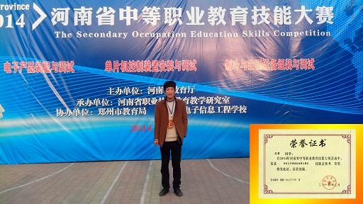 在近日结束的2014年河南省中等职业教育技能大赛电子电工类专业技能竞赛中,我系选手表现出色,凭借着精湛的技艺和良好的心态,取得了优异成绩。