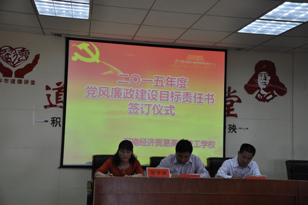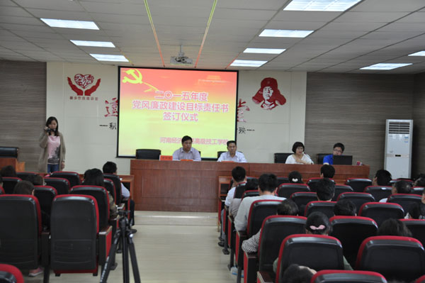 5月15日下午,我校在新教学楼多功能报告厅举行党风廉政建设目标责任书签订仪式。签订仪式由校党委副书记、纪委书记王成方同志主持,校领导班子、科室主任、中层干部和全体教职工参加了会议。