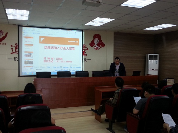 (方正科技人事部主管向学生宣讲企业文化)
