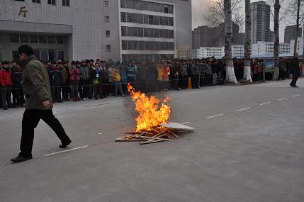 为进一步加强学校安全工作,增强全体师生的安全防范意识和提高遇到灾害发生时积极科学自救的能力,让广大师生更深入地了解突发事件逃生常识,从容应对火灾、地震等事件的发生,最大限度地保护广大师生的人身安全,我校于2014年12月25日下午15:40组织了模拟突发事件逃生疏散演练。校长郭国强同志作为此次演习总指挥,主管学生工作的工会主席张志杰同志作为副总指挥。通过这次演练提升了全校师生的安全防范意识和科学的自我保护能力,学会了在发生火灾时如何应用消防灭火器,但是此次演习也暴露出了集合时间较长,部分学生不够认真的问题。通过此次演练后,学校会不定期进行疏散演练。