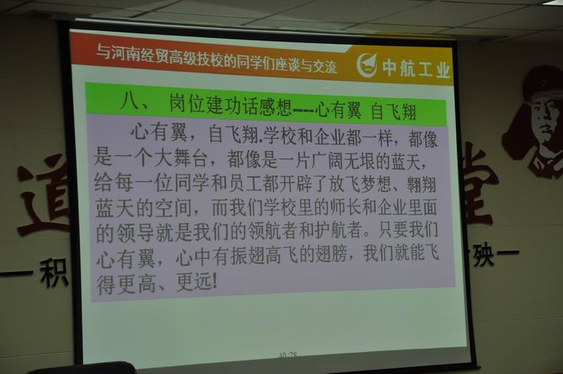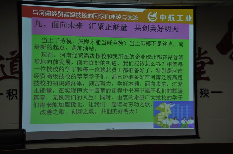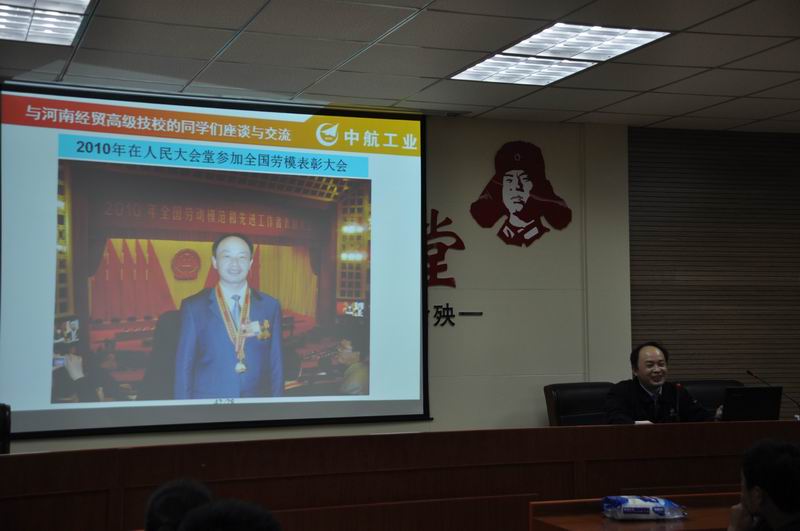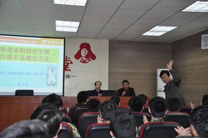4月17日下午4:30,新航集团豫北公司全国劳动模范朱义兵老师应我校校企合作办公室邀请到我校给机械加工系学生作专题报告。参加本次报告会的领导有校工会主席张主席、新航集团豫北公司人资部孙部长、校校企合作办公室袁主任、荆主任,机械加工系梁主任、闫主任,团总支书记于书记以及机械加工系全体教师和班主任。