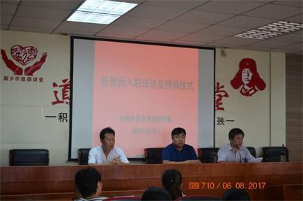 2017年8月6日上午9:00我院在四楼报告厅,举行了河南经济贸易技师学院2017年新教师入职培训及拜师仪式。院长郭国强同志、副院长苏天保同志、副院长张志杰同志以及师带徒新老教师,全体教学系统和学管系统中层参加了此次会议。