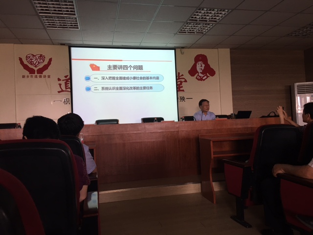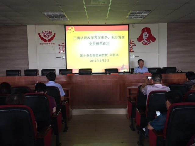 6月2日下午,我院邀请新乡市委党校副教授刘征孝同志上了一堂题为“正确认识改革发展形势,充分发挥党员模范作用”的专题党课。学院党委书记任伟民同志主持讲党课活动。全院党员、入党积极分子,以及中层干部共90余人聆听了讲座。
