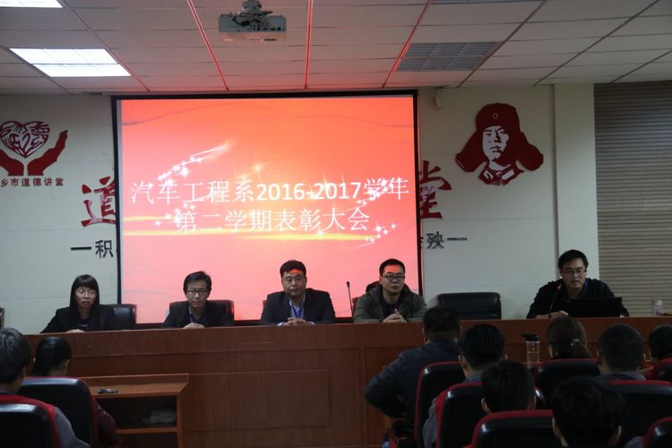 今天我们齐聚一堂,将对2016-2017学年第二学期各班涌现出的学习标兵、三好学生、优秀团干部、优秀团员、文明学生、优秀班干部、优秀学生会干部进行表彰。出席会议的有汽车工程系主任张桂春老师、教务处主任裴志朵老师、学生科科长郭锐老师、学生科副科长孙树明老师,会议由汽车工程系团总支书记周松波老师主持。