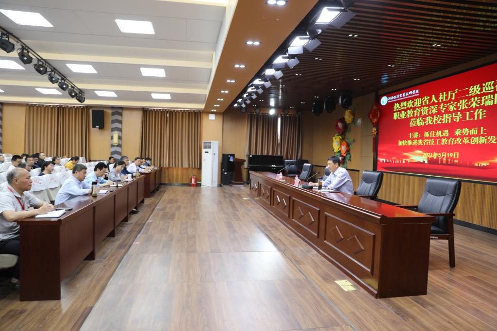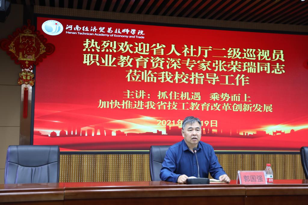 2021年5月19日下午,河南经济贸易技师学院邀请河南省人力资源和社会保障厅二级巡视员张荣瑞作了题为《抓住机遇 乘势而上 加快推进我省技工教育改革创新发展》的专题讲座。学院领导班子成员及全体教职工参加了本次活动。
