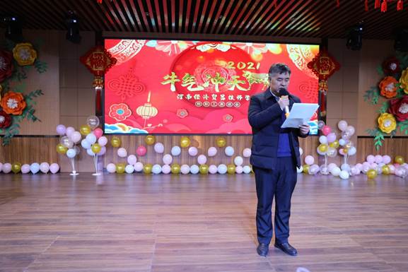 郭国强在致辞中说,他代表学院党委向辛勤工作在教育教学一线的广大教师、向默默奉献的广大干部职工,致以节日的问候、诚挚的感谢和美好的祝福!他指出,2020年是极不平凡的一年,也是学院发展史上难忘的一年。学院党委围绕立德树人根本任务,持续深化“创新升级行动”,因时而谋,借势而进,按照年初院党委明确的“抓细节、促效益、提质量”工作举措,全校师生员工以新面貌投身于新发展,以新作为取得了新成绩。党的建设得到全面加强,基层党组织建设得以完善,完成了支部换届、中层干部竞聘,打造政治坚定、业务过硬的干部队伍,国赛省赛取得重大突破,校园安全基础筑稳筑牢,疫情防控工作做细做实,校企合作同频共振,一体化师资队伍培优建强。这一年,大家过得很充实、走得很坚定,这些成绩的取得,是全体教职工共同努力干出来的,是全校师生员工昂扬奋进拼出来的。他强调,2021年是中国共产党成立100周年,也是“十四五”规划起步实施之年,是我们“双高”项目建设关键之年。全校师生员工要在习近平新时代中国特色社会主义思想的指引下,不忘立德树人初心,牢记为党育人为国育才使命,贯彻落实学校党委“创一流、可持续”发展目标,在推动高质量发展上闯出新路子,在构建新发展格局中展现新作为,奋力谱写新时代技师学院建设新篇章。