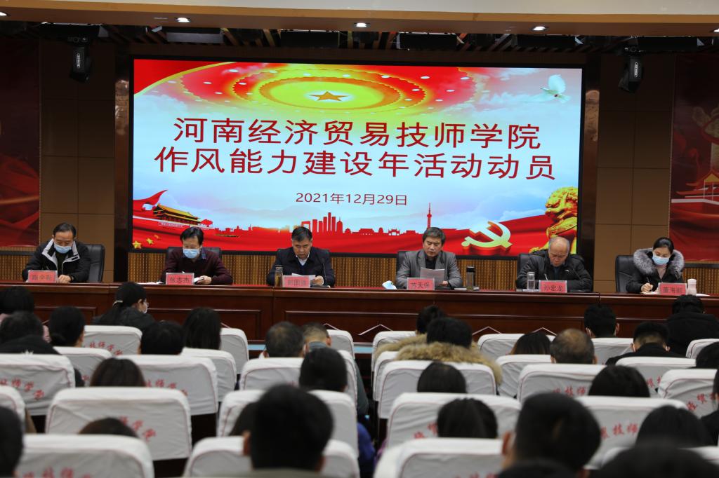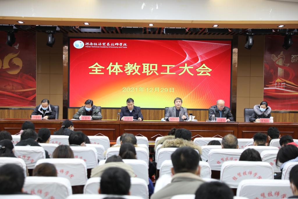 2021年12月29日下午,学院在七楼报告厅召开全体教职工大会,动员部署“能力作风建设年”活动,并对招生工作进行了总结和动员。学院领导班子成员及全体教职员工参加会议,会议由学院党委委员、副校长苏天保主持。