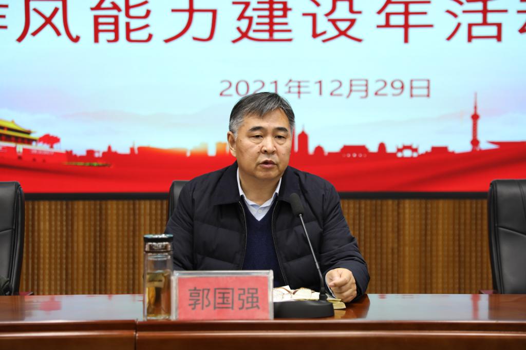 最后,党委书记、校长郭国强做总结讲话。他首先回顾了全年的工作,不平凡的2021年,学院在“抓细节、促效益、提质量”的基础上,提出了“规范、融合、培优”的工作关键词,充分肯定了一年来学院的各项举措和取得的成绩,并向这一年来为学院发展做出辛勤努力的广大教职员工表示感谢。在招生工作中他提出,一是要高度重视、不可放松;二是人人要担负起招生宣传的责任;三是要做好宣传的组织工作,不断宣传提高学校的影响力和吸引力。在“能力作风建设年”动员中,他指出,要充分认识开展“能力作风建设年”活动的意义,结合学院实际,积极开展“三零”建设,要紧扣学院发展需要,在学与干的结合中练就过硬能力。他要求,要坚持以上率下、示范带动的原则,突出目标导向、问题导向、结果导向,加强思想淬炼、政治历练、时间锻炼、专业训练,站位“奋勇争先、更加出彩”发展大局,深化“创新、升级”行动,坚持以党建“第一责任”引领和保障发展“第一要务”,全方位开展标准化建设,引导推动全院党员干部能力大提升、作风大转变,大力弘扬“干事干净干练”的优良作风,在拉高标杆中争先进位,加快我院高质量跨越式发展。全体教职工要充分认识“能力作风建设”活动的意义,不断增强政治能力、业务能力、改革创新能力、不断增强安全保障能力及群众工作能力,锻造“四大作风”,找准“四项措施”,努力实现学院“创一流,可持续”的发展目标。
