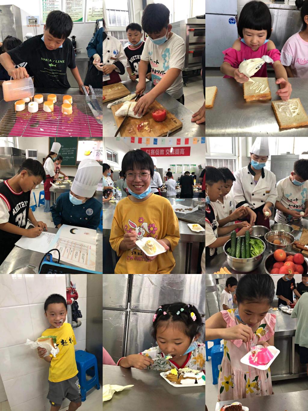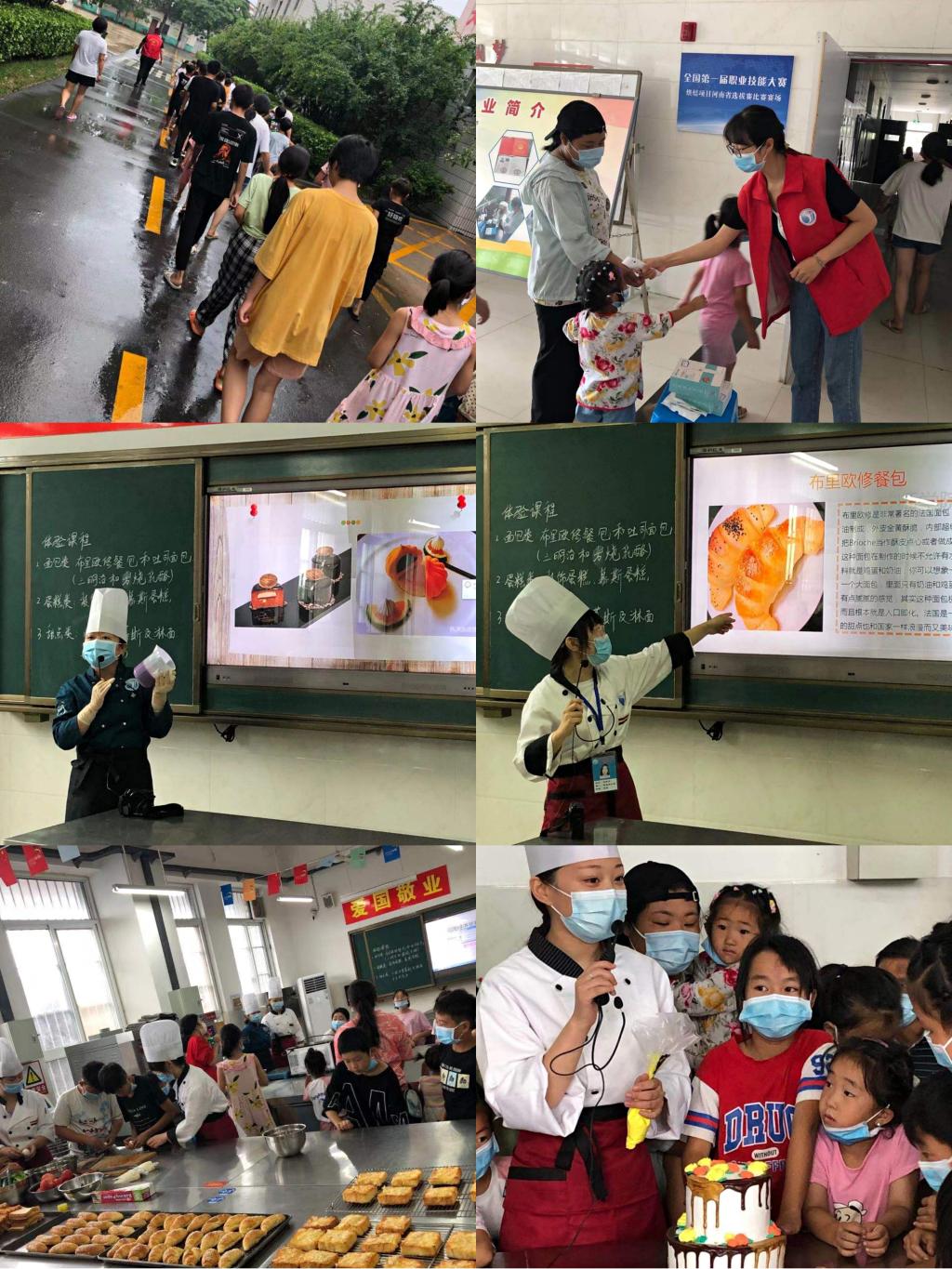 今天上午9时,学院粮油食品系志愿者老师带领小朋友们参加了西式面点DIY职业体验课。课程内容包括:面包类、蛋糕类、巧克力、慕斯类DIY体验等。在上课之前,老师依次为孩子们量体温,同时讲授暑假安全自护知识和防疫知识,叮嘱大家在疫情期间要做好个人防护,勤洗手、戴口罩。在活动前,恰逢11岁小姑娘党静怡的生日,得知这个情况后,志愿者老师们提前一天为她准备了漂亮的双层蛋糕,大家一起给她过生日,送上最真挚的祝福,孩子的家人感动的热泪盈眶,相信这次特殊的生日也会给她留下难忘的记忆。为了让大家深入了解粮油食品系的专业特点及能品尝到美味的甜品,志愿者教师们提前一天做好当日体验课的准备工作,很多小朋友都主动动手切蛋糕,制作三明治及慕斯蛋糕,他们不仅学到了烘焙知识,还品尝了甜点美食,吃的不亦乐乎。看着孩子们童真般的笑容,志愿者教师们感到此次活动的举办非常有意义。