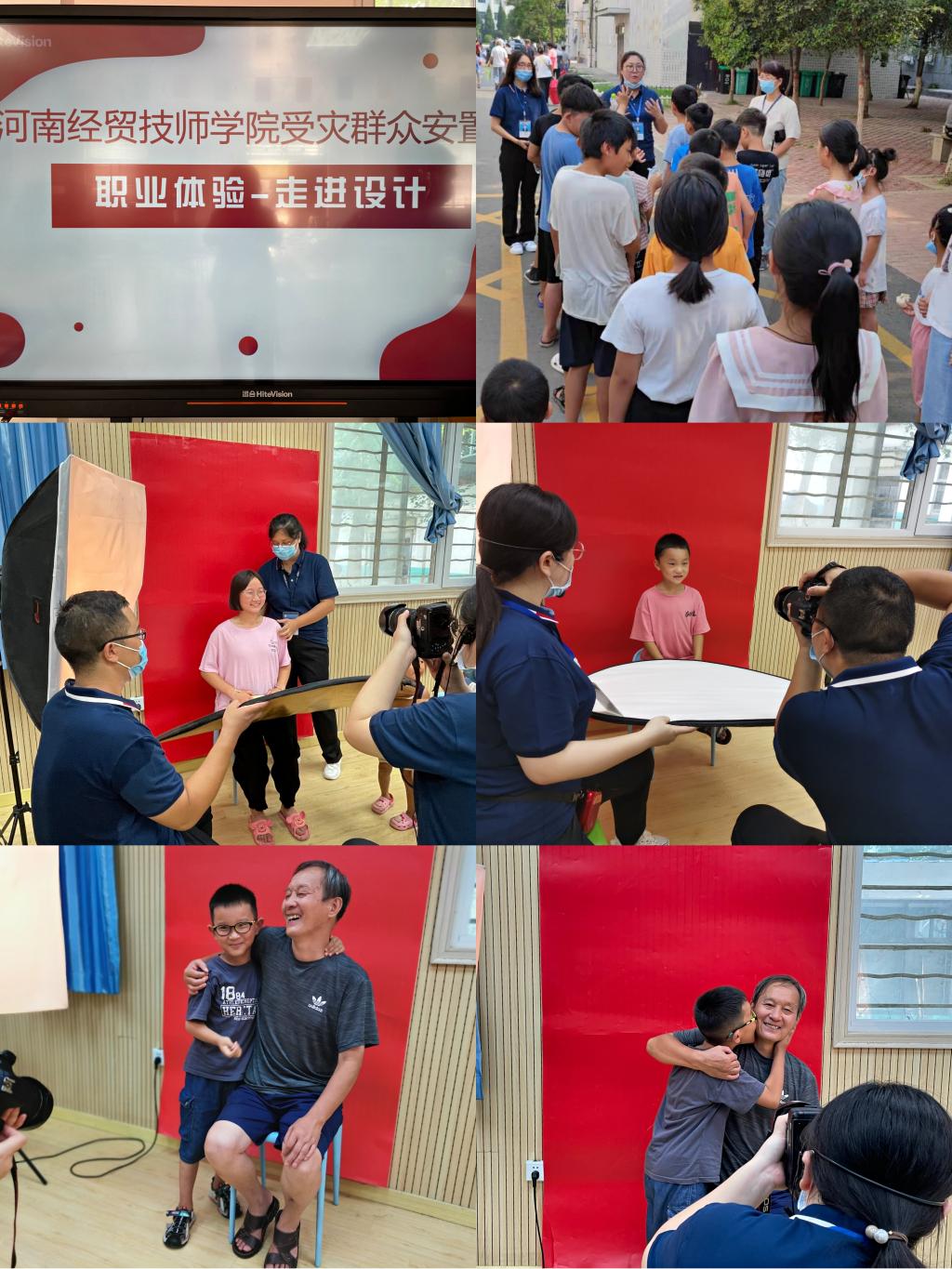 上午9时,在学院信息技术系志愿者老师们发起的“走进设计”活动中,安置点的群众们跟着老师互动,同时又学到了知识。体验课程内容包括:证件照及生活照拍摄、PS修图及证件照制作、照片打印展示成果及校企专班介绍。为提高老乡体验感与满意度,志愿者教师耐心为老乡讲解,受灾群众学习拍照片,展览全家福,大家积极参与,温馨欢乐的氛围驱散老乡心头的阴云。学院通过开设职业体验课,丰富老乡精神文化生活,提振老乡度过难关的信心,同时让老乡们更深入地了解到职业教育与生活息息相关,感受学院特色的校园文化。