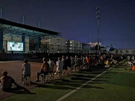 学院充分发挥职业教育优势,组织公益课堂,昔日的形体房此时俨然已成为一个“临时幼儿园”,艺术教育系专业老师和聪明树老师共同为幼儿组织活动,体育老师发挥专长,组织广场舞、健美操、篮球、乒乓球等活动,这些都得到了受灾群众的热烈好评。