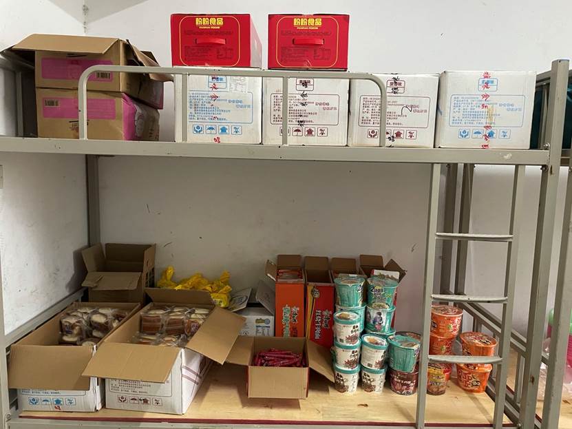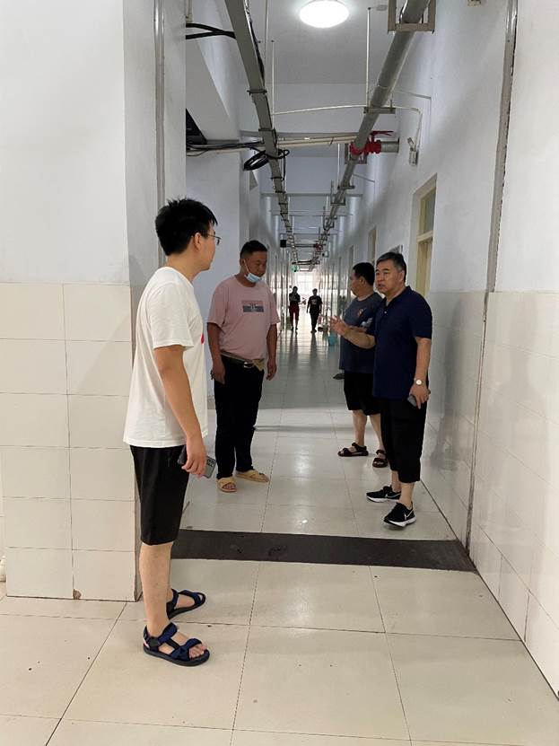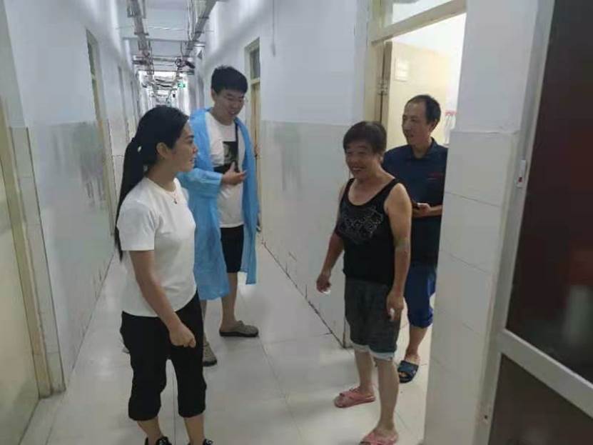 副校长董海丽接到通知后立即联系相关科室,将学院五号公寓调配出300个床铺,以备居民使用,为受灾民众提供了舒适可靠的居住条件与充足的生活物资。准备工作完成后,南环社区开始陆续迁移群众至我校临时安置点。副院长董海丽带领总务处处长张剑锋、学生处处长孙树明、值班科长杜学鹏亲临现场,安排受灾群众的安置工作。直至深夜,工作小组成员仍在公寓了解社区群众住宿情况,并及时提供补充群众所需的脸盆、雨伞、纸篓、方便面、热水、一次性纸杯等生活用品,保证每位居民在内涝期间的生活需求。