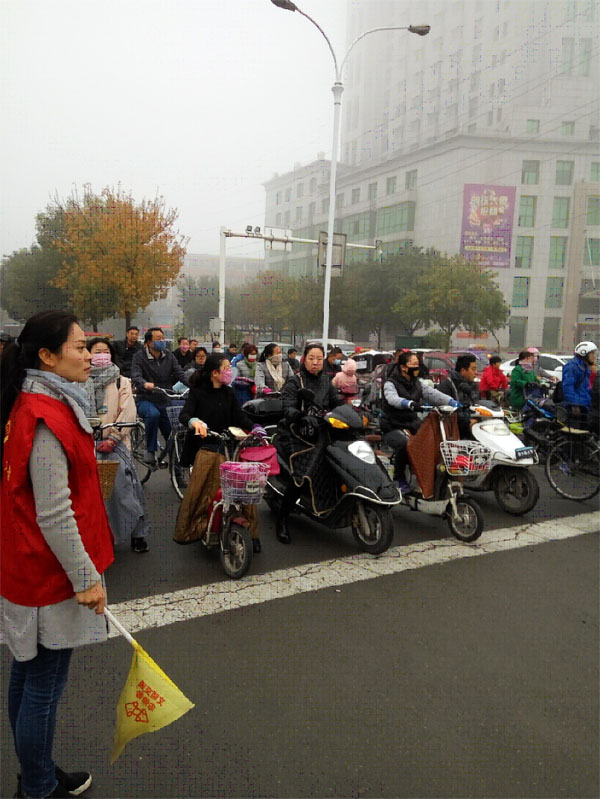 10月25日一大早,天空中还有蒙蒙的雾气,我校基础部、总务科、督导办的12名志愿者就早早来到臧营桥路口,和值班郭警官简单沟通后,大家就分别在臧营桥多岔路口处开展文明出行劝导活动。