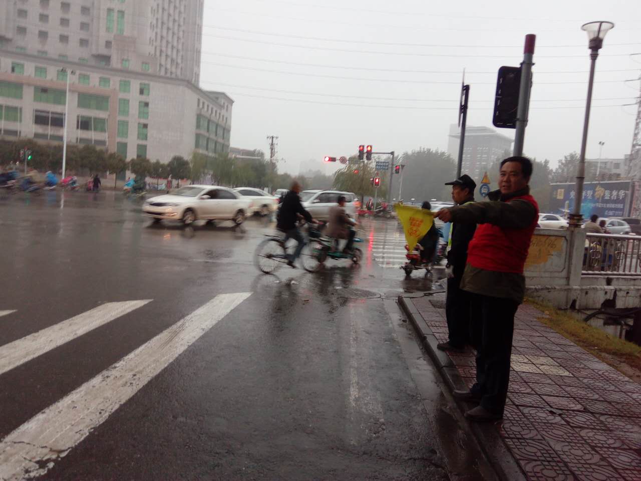 虽然寒风凛冽,秋雨淅沥,但经贸志愿者脸上依旧洋溢着最真挚的笑容。“为了您安全,请走斑马线”、“您守秩序,为您点赞”一句句劝导语饱含志愿者们对市民的温馨劝导,市民们也在我校志愿者的温馨提示下更加遵守交通规则,不抢红灯,不在车流中穿行。