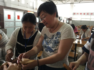 上午8:30行政人员和没课的老师们,纷纷走进餐厅在清幽的古典音乐下,包粽子活动正式开始了,只见粽叶、糯米在手中上下舞动,有经验的老同志手把手的教年轻人学习包粽子,各自发挥自己的潜能,经过2个小时的时间一个个粽子便完美呈现在眼前。