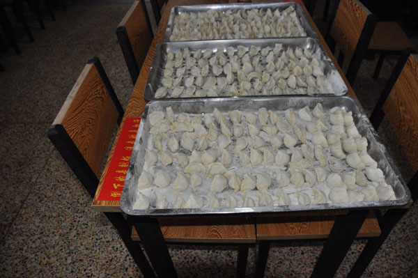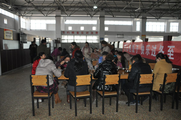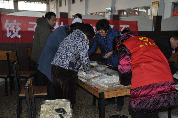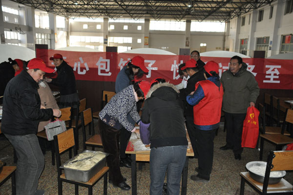 2014年12月22日上午,我校志愿者、党员和教职工们相聚在餐厅进行“开心包饺子、快乐过冬至”活动。