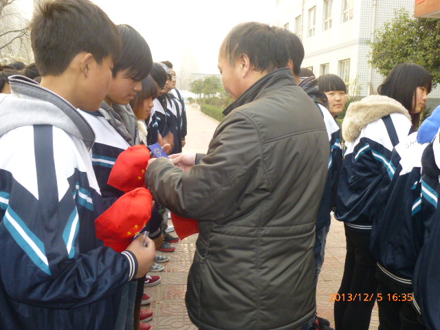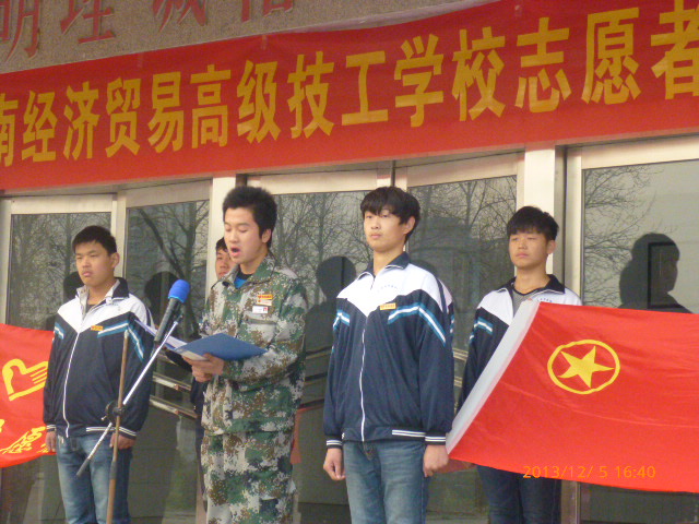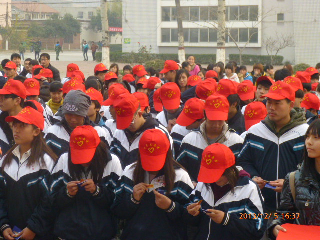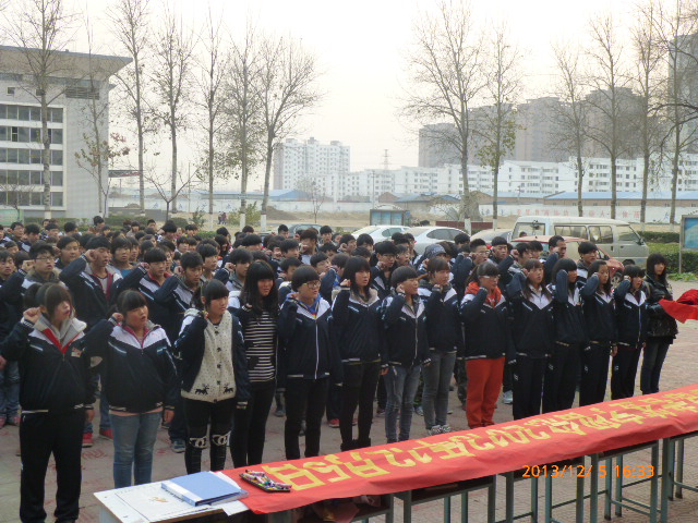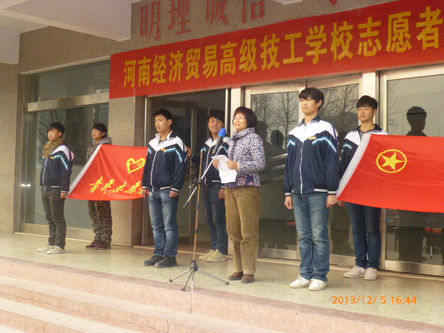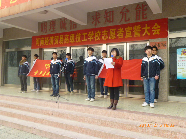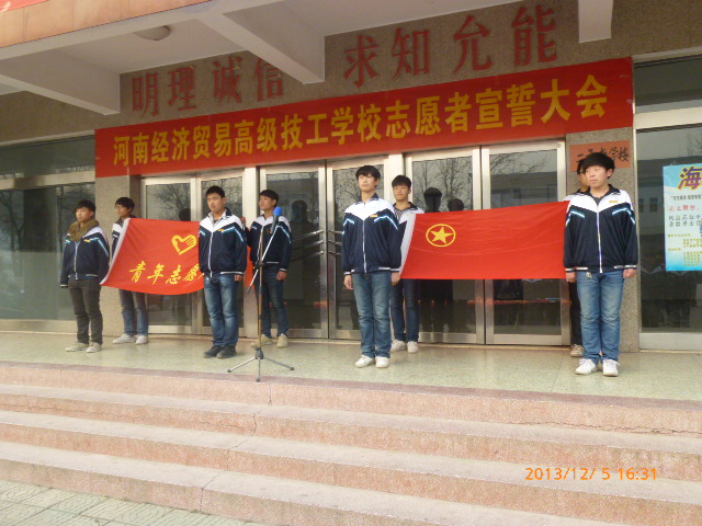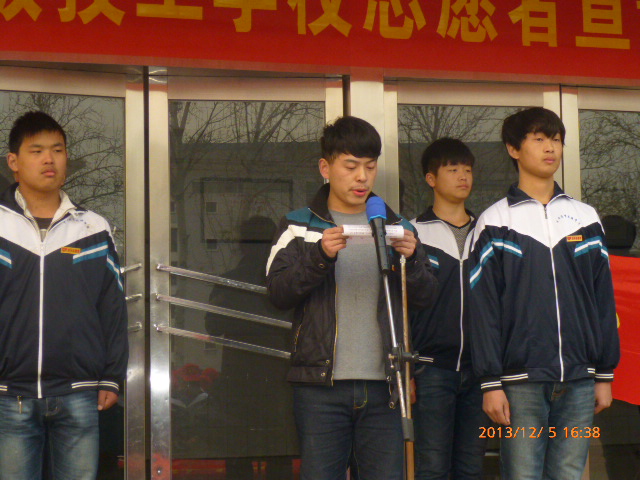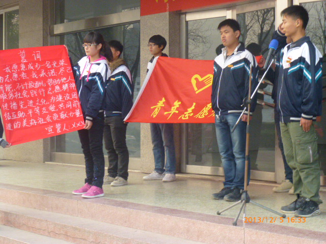2013年12月5日,一个光荣的日子,我校161名青年学生在鲜红的国旗、团旗和中国志愿者协会会旗前庄严宣誓,成为了光荣的中国注册志愿者。