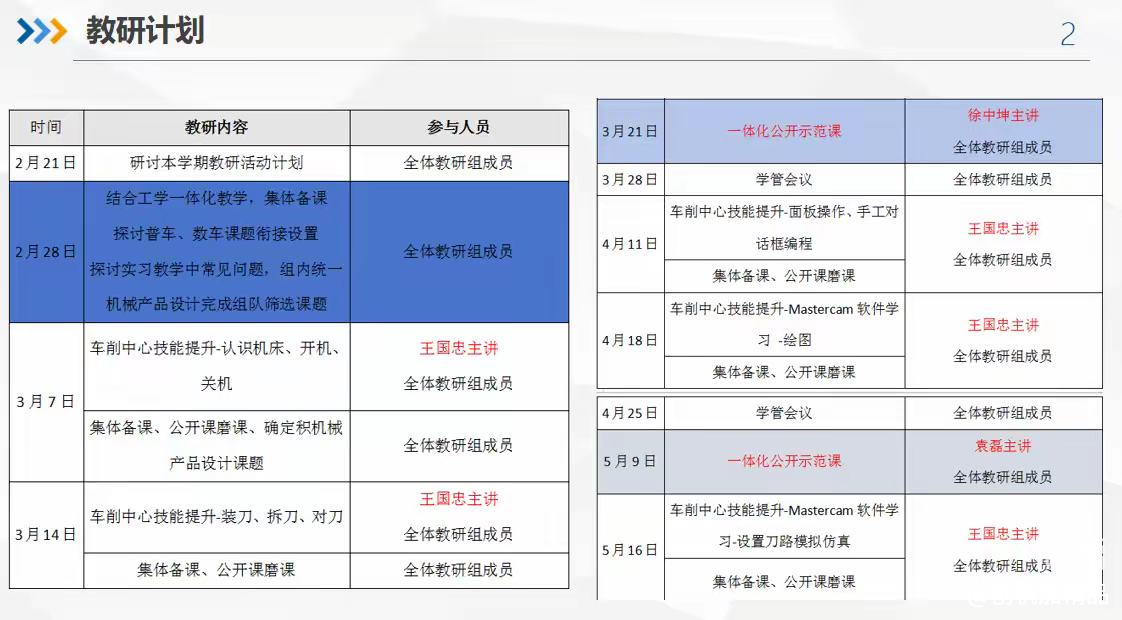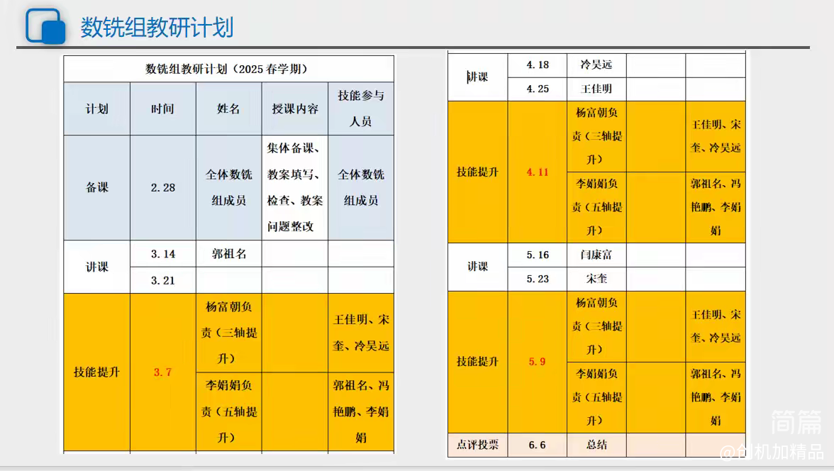 铣工教研组本学期技能提升根据每位老师目前的教学情况,分两个方向的技能提升。