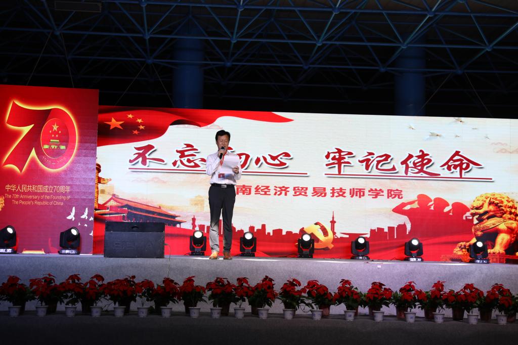 70年风雨,70年辉煌,在伟大祖国70周岁华诞来临前夕,为深入贯彻落实党的十九大精神和习近平新时代中国特色社会主义思想,庆祝中华人民共和国成立70周年,进一步坚定文化自信,唱响主旋律,培育践行社会主义核心价值观,推动校园文化事业的繁荣发展,引导和激励全院上下不忘初心、牢记使命,河南经济贸易技师学院特于9月26日隆重举办庆祝中华人民共和国成立70周年暨迎新晚会。