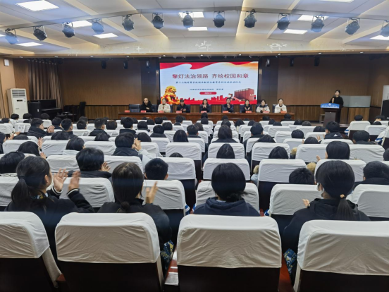 全系师生共同观摩“法治校园”主题模拟法庭展示。活动以真实案例为蓝本,通过角色扮演还原司法流程,使学生直观感受法律的庄严与公正,在沉浸式体验中强化了法治实践感知。